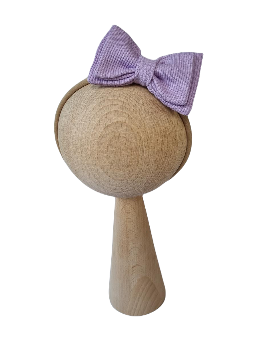 Efektowna kokarda o wymiarach około 5x8 cm, umocowana na rozciągliwej opasce bezuciskowej, dzięki czemu pasuje zarówno na malutkie jak i większe główki.