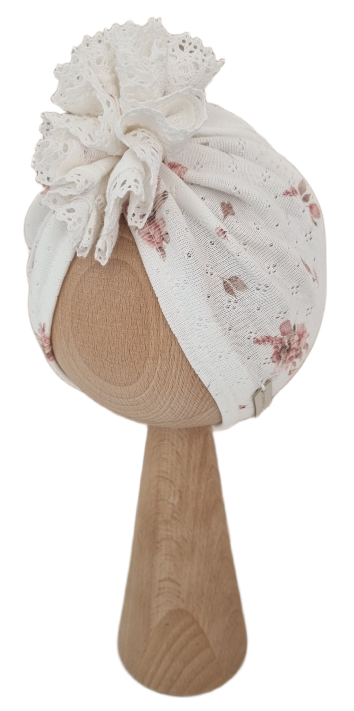 TURBAN AŻUREK FALBANKA Z KORONKĄ Peonie