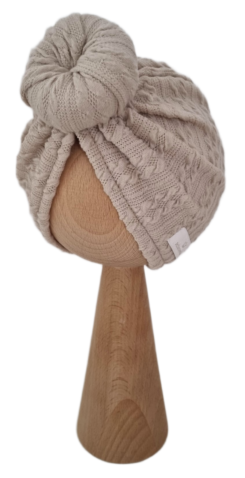 Piękny sweterkowy turban donut o wyjątkowym splocie warkocza.