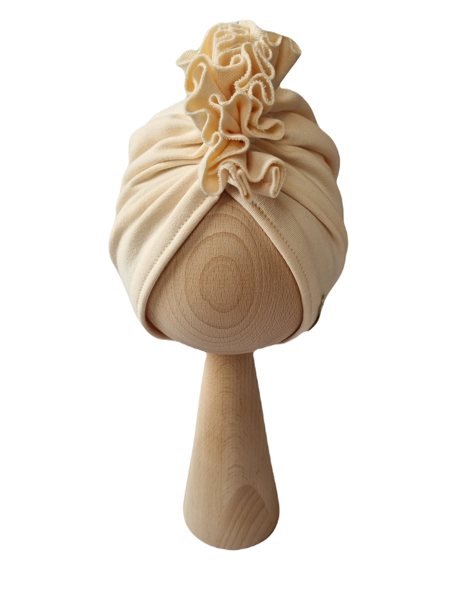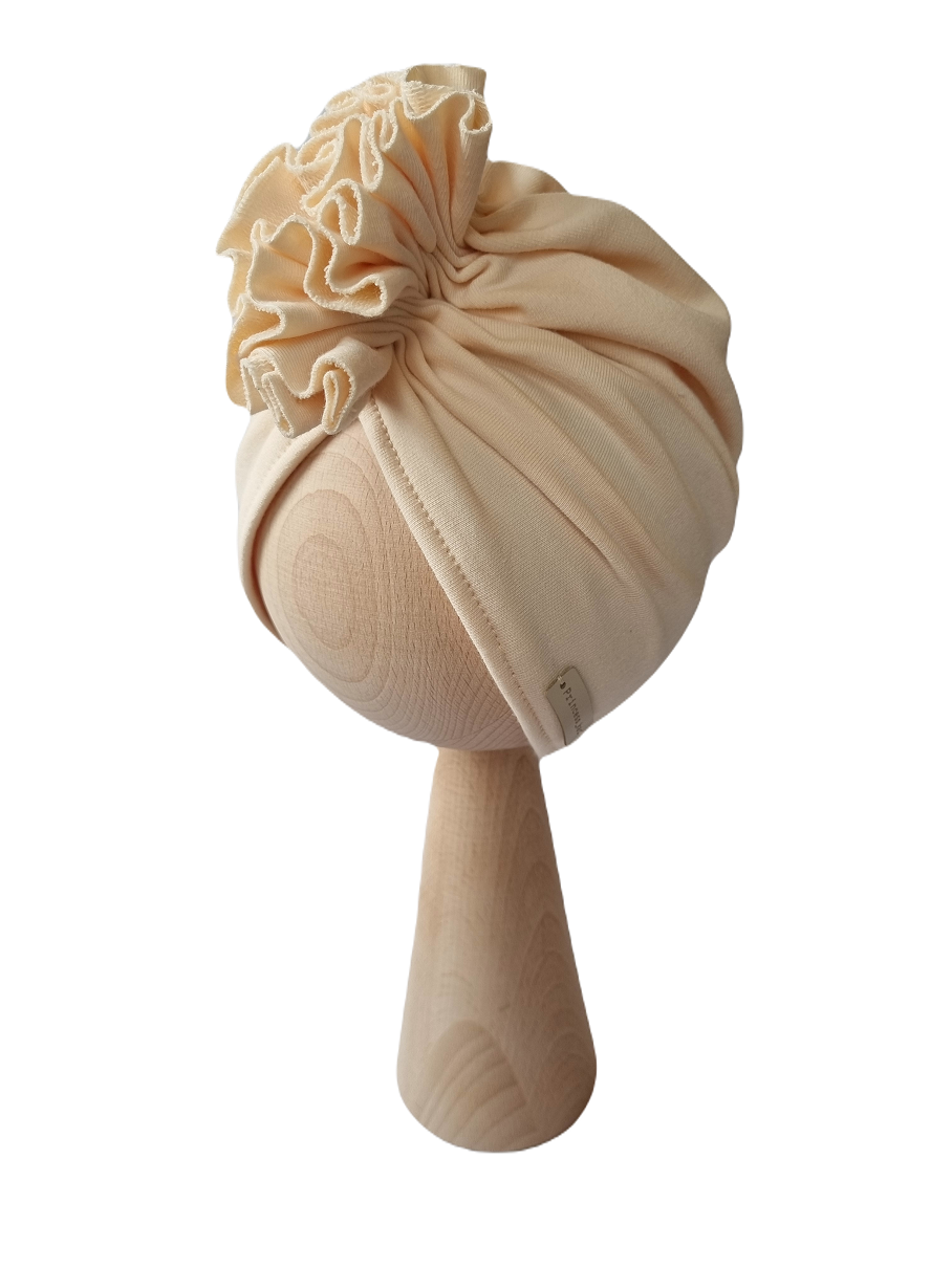 Turban z falbanką to obecnie hit dziecięcej stylizacji. Wygląda niezwykle efektownie, a przy tym jest bardzo praktyczny. Ze względu na swoją elastyczność pięknie dopasowuje się do głowy dziecka, przez co dziewczynki noszą go zdecydowanie chętniej niż czapki.
