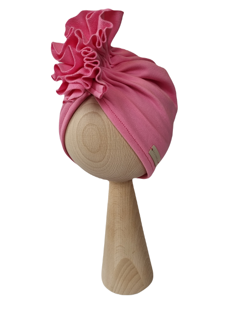 Turban z falbanką to obecnie hit dziecięcej stylizacji. Wygląda niezwykle efektownie, a przy tym jest bardzo praktyczny. Ze względu na swoją elastyczność pięknie dopasowuje się do głowy dziecka, przez co dziewczynki noszą go zdecydowanie chętniej niż czapki.