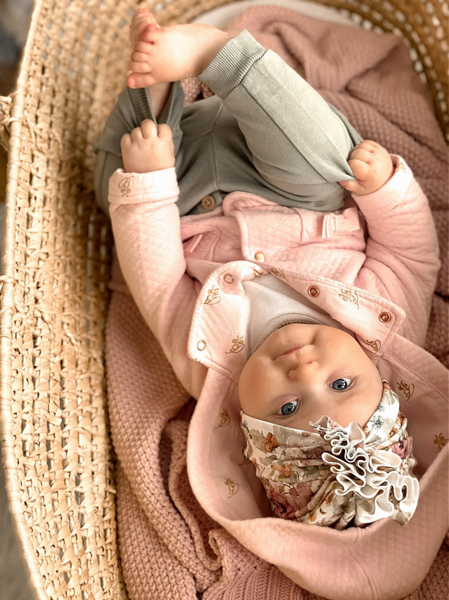 Turban z falbanką to obecnie hit dziecięcej stylizacji. Wygląda niezwykle efektownie, a przy tym jest bardzo praktyczny. Ze względu na swoją elastyczność pięknie dopasowuje się do głowy dziecka, przez co dziewczynki noszą go zdecydowanie chętniej niż czapki.