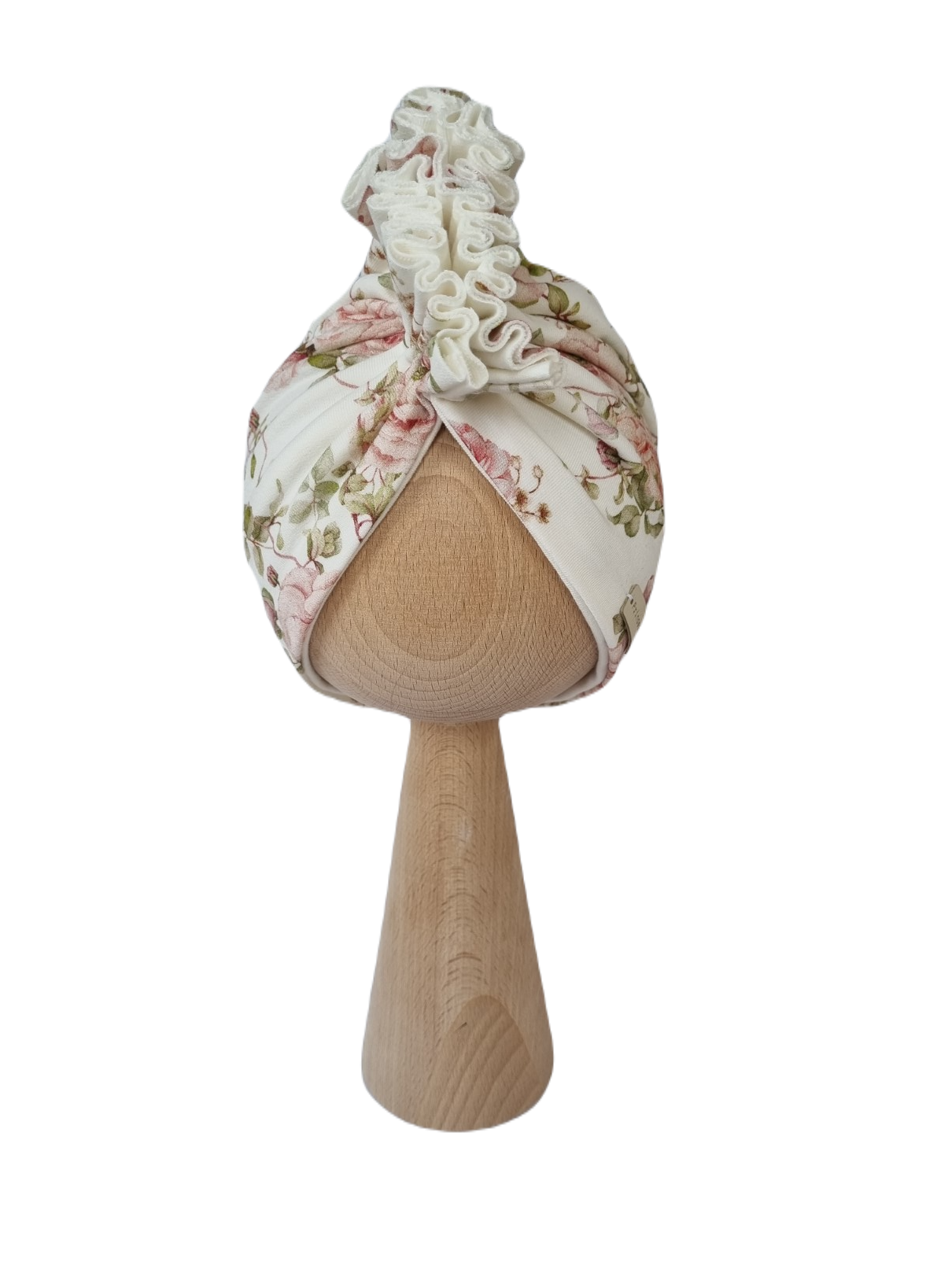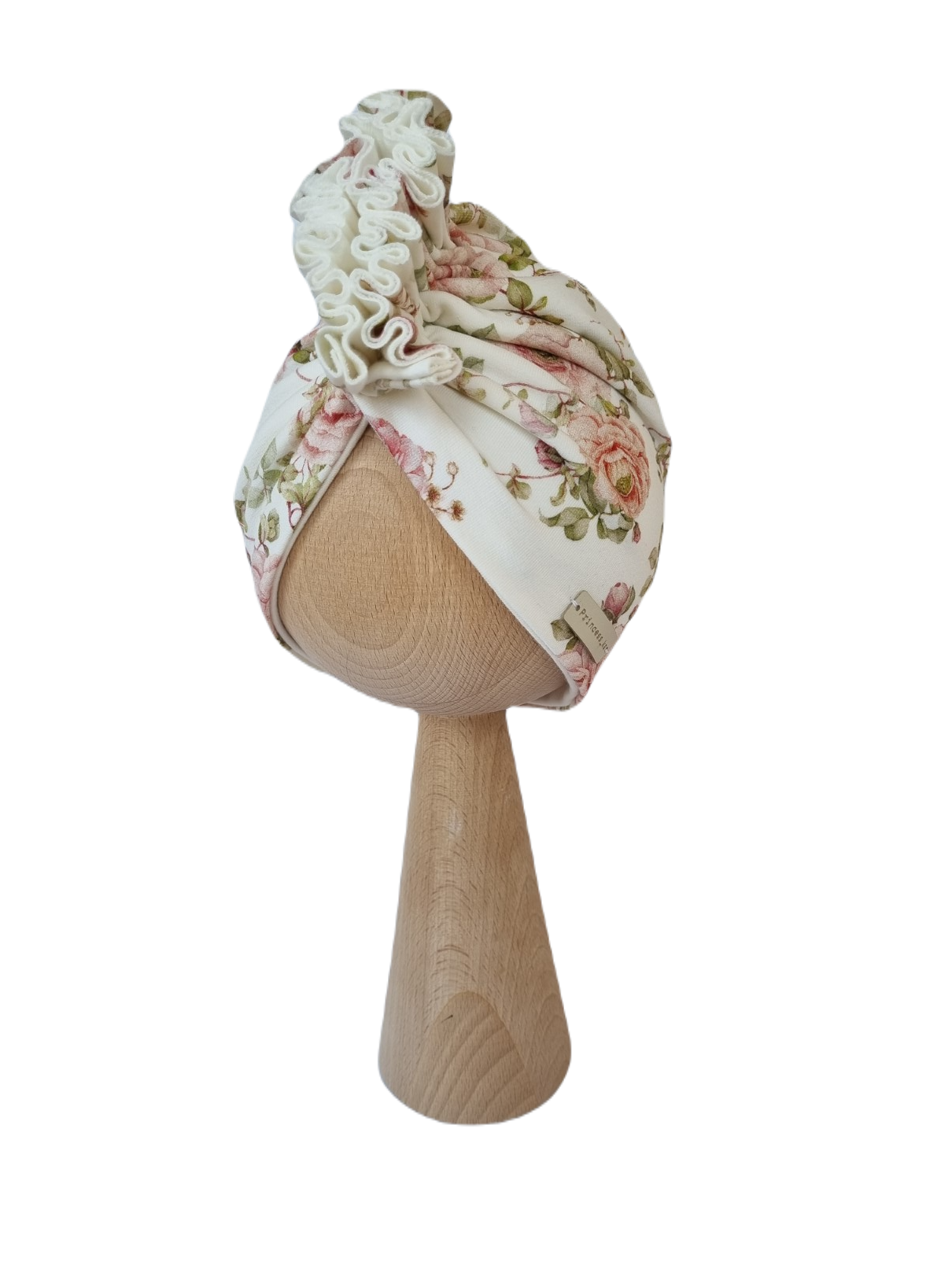 Turban z falbanką to obecnie hit dziecięcej stylizacji. Wygląda niezwykle efektownie, a przy tym jest bardzo praktyczny. Ze względu na swoją elastyczność pięknie dopasowuje się do głowy dziecka, przez co dziewczynki noszą go zdecydowanie chętniej niż czapki.