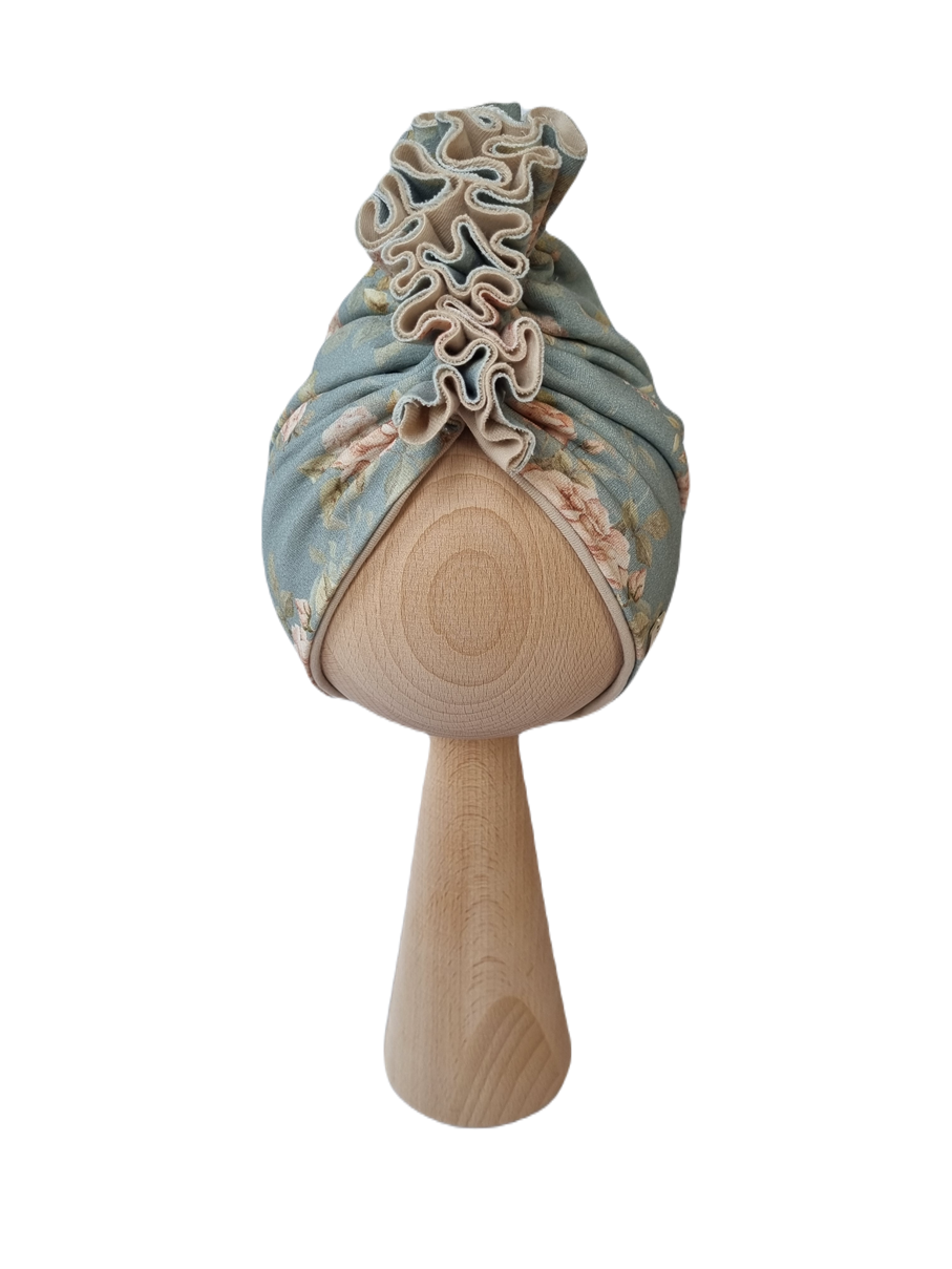 TURBAN FALBANKA PODWÓJNY Vintage Roses Niebieski