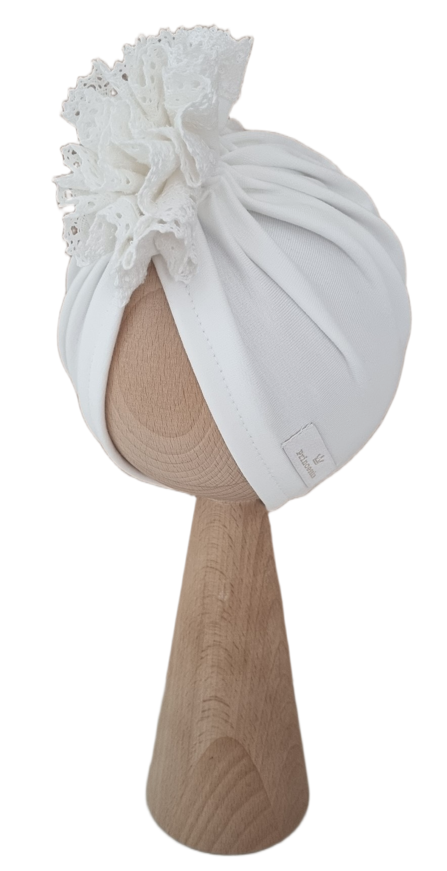TURBAN FALBANKA Z KORONKĄ Śmietankowa Biel