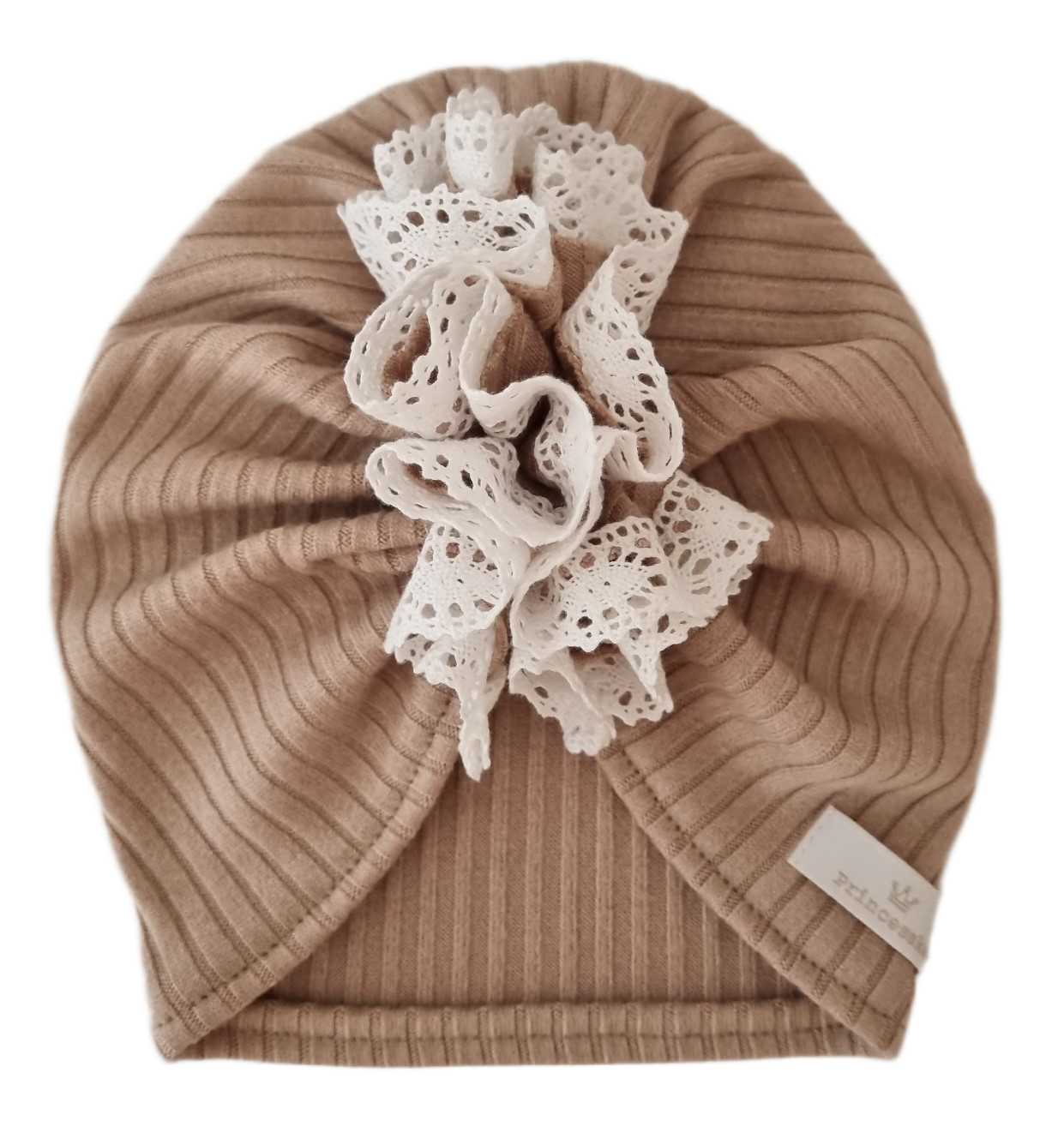 TURBAN FALBANKA Z KORONKĄ sweterek prążek Ciemny Beż