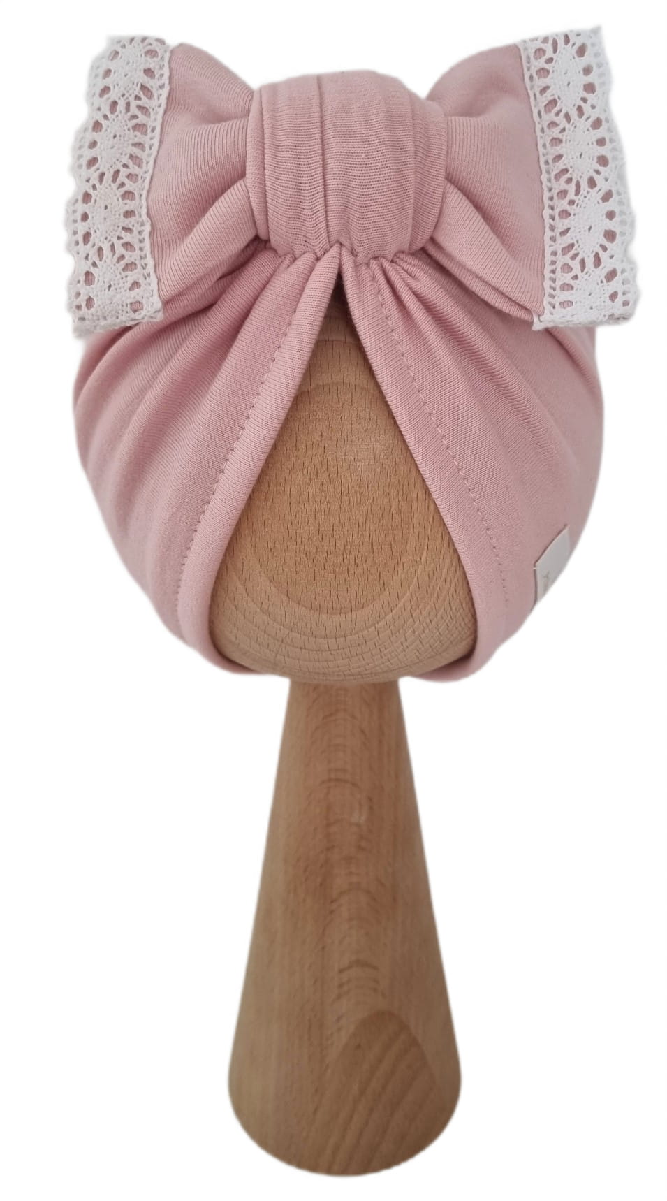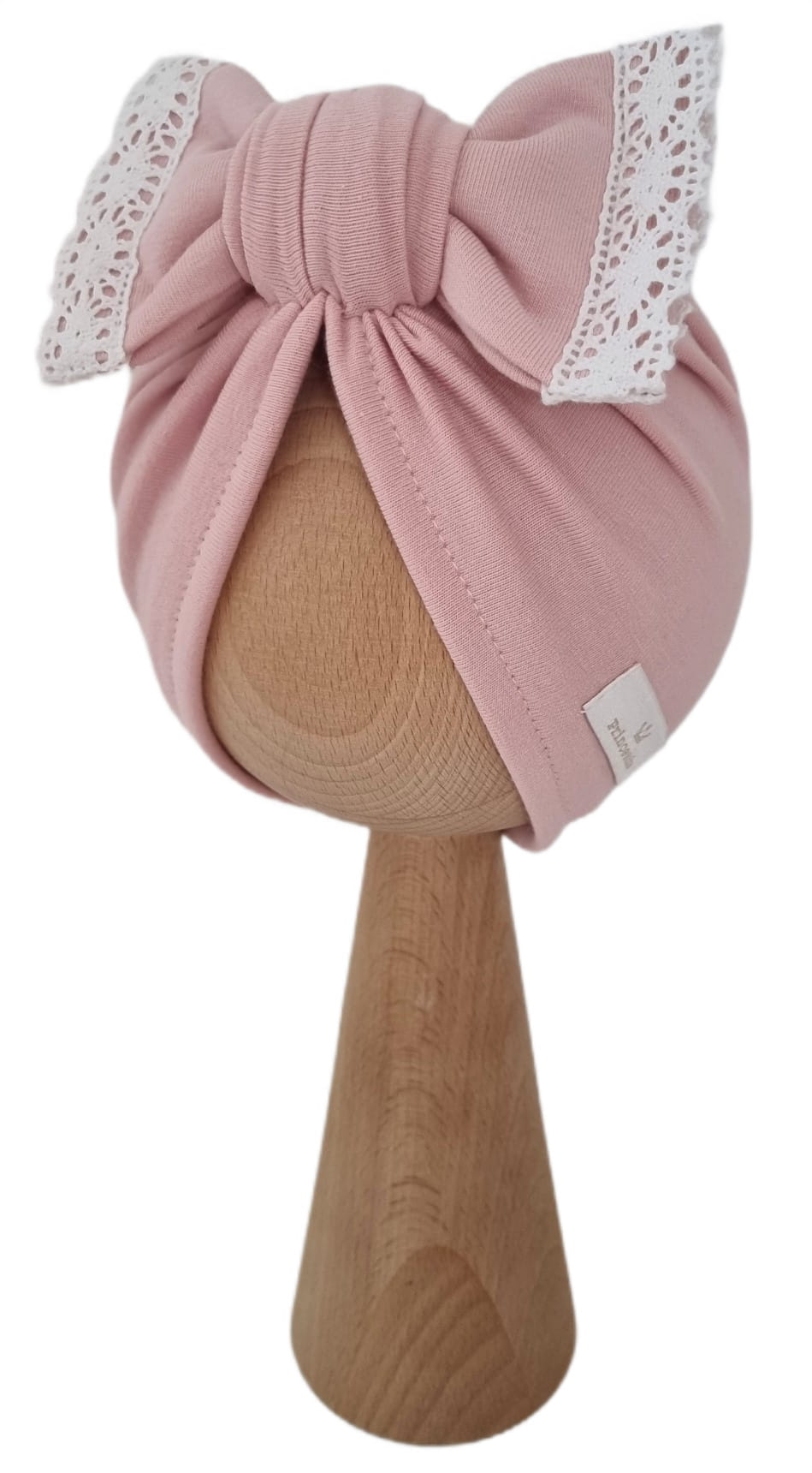 TURBAN KOKARDA Z KORONKĄ Jasny Róż
