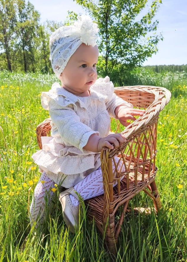 KORONKOWY TURBAN FALBANKA to nasza letnia propozycja na słoneczne i cieplejsze dni. Jest bardzo przewiewny, osłania główkę dziecka przed słońcem, a przy tym wygląda niezwykle efektownie.