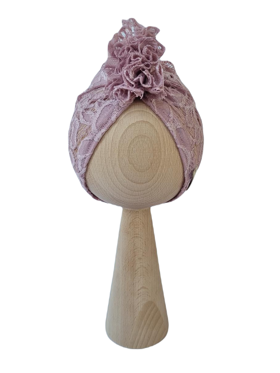 TURBAN KORONKOWY FALBANKA Brudny Róż