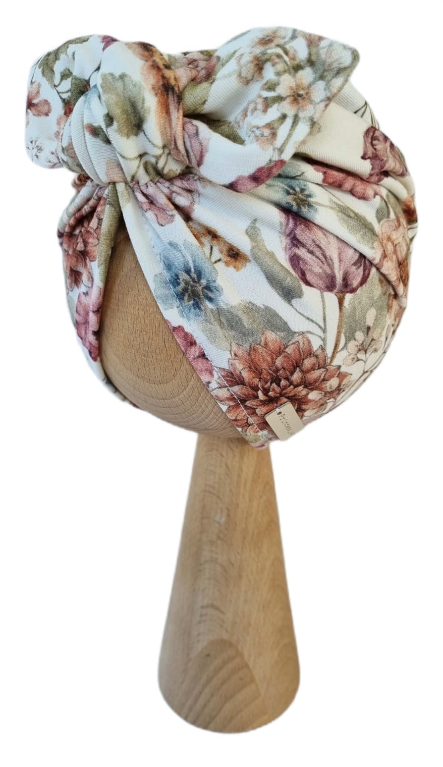 TURBAN MOTYLEK wygląda niezwykle efektownie, a przy tym jest bardzo praktyczny. Ze względu na swoją elastyczność pięknie dopasowuje się do głowy dziecka, przez co dziewczynki noszą go zdecydowanie chętniej niż czapki.