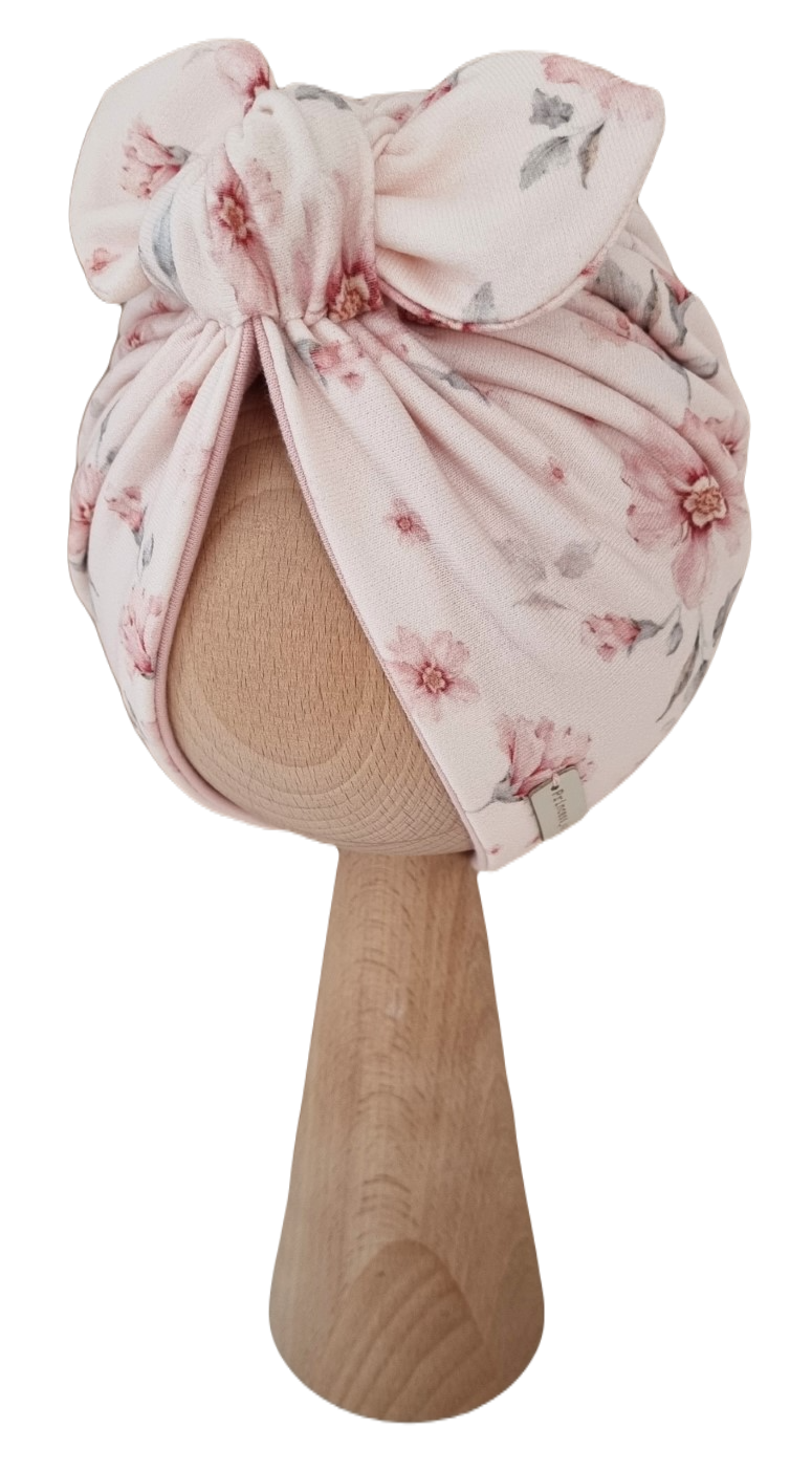 TURBAN MOTYLEK PODWÓJNY Magnolie na Różu