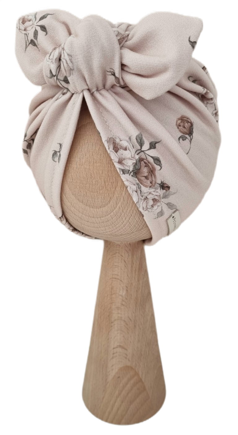 TURBAN MOTYLEK Sepia Flowers Mokka