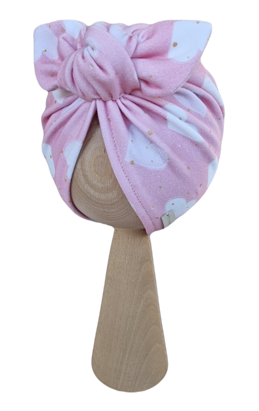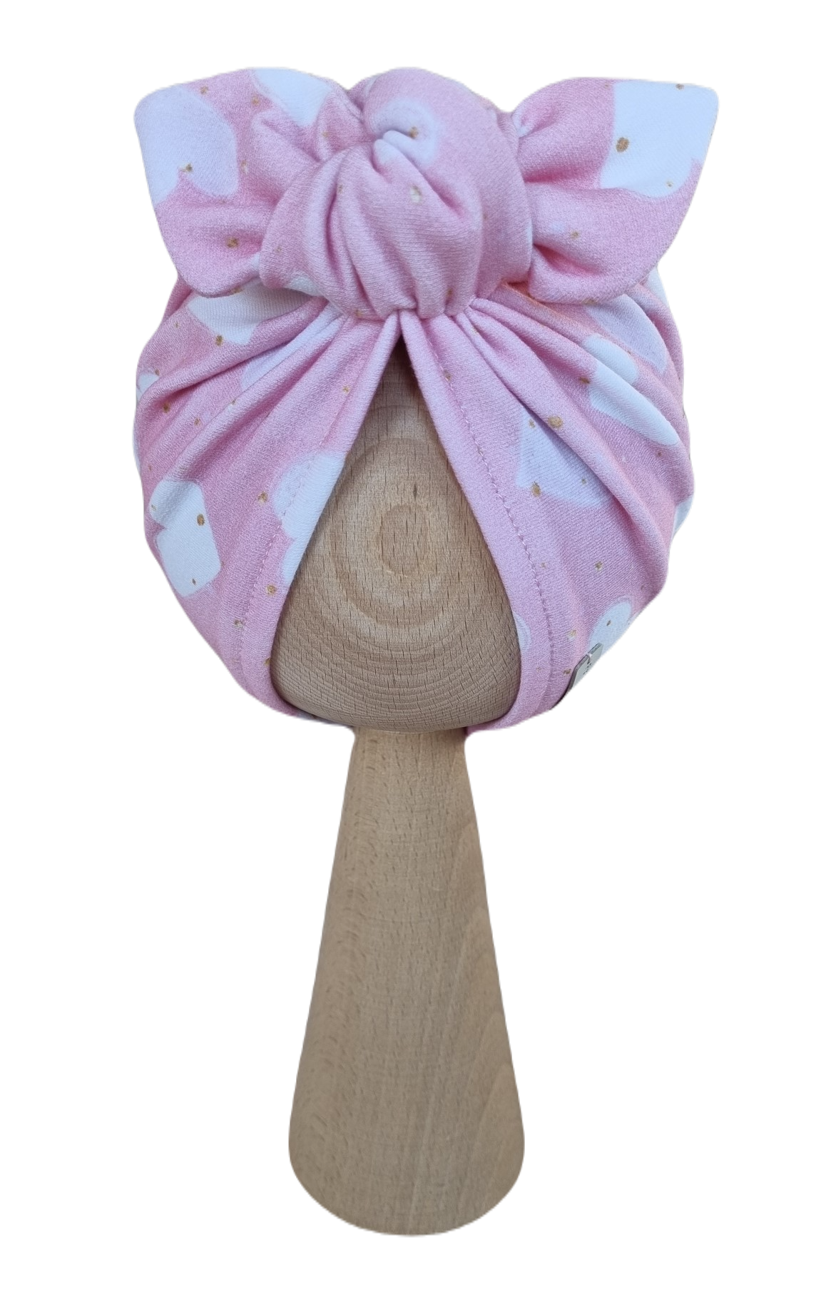 TURBAN MOTYLEK wygląda niezwykle efektownie, a przy tym jest bardzo praktyczny. Ze względu na swoją elastyczność pięknie dopasowuje się do głowy dziecka, przez co dziewczynki noszą go zdecydowanie chętniej niż czapki.