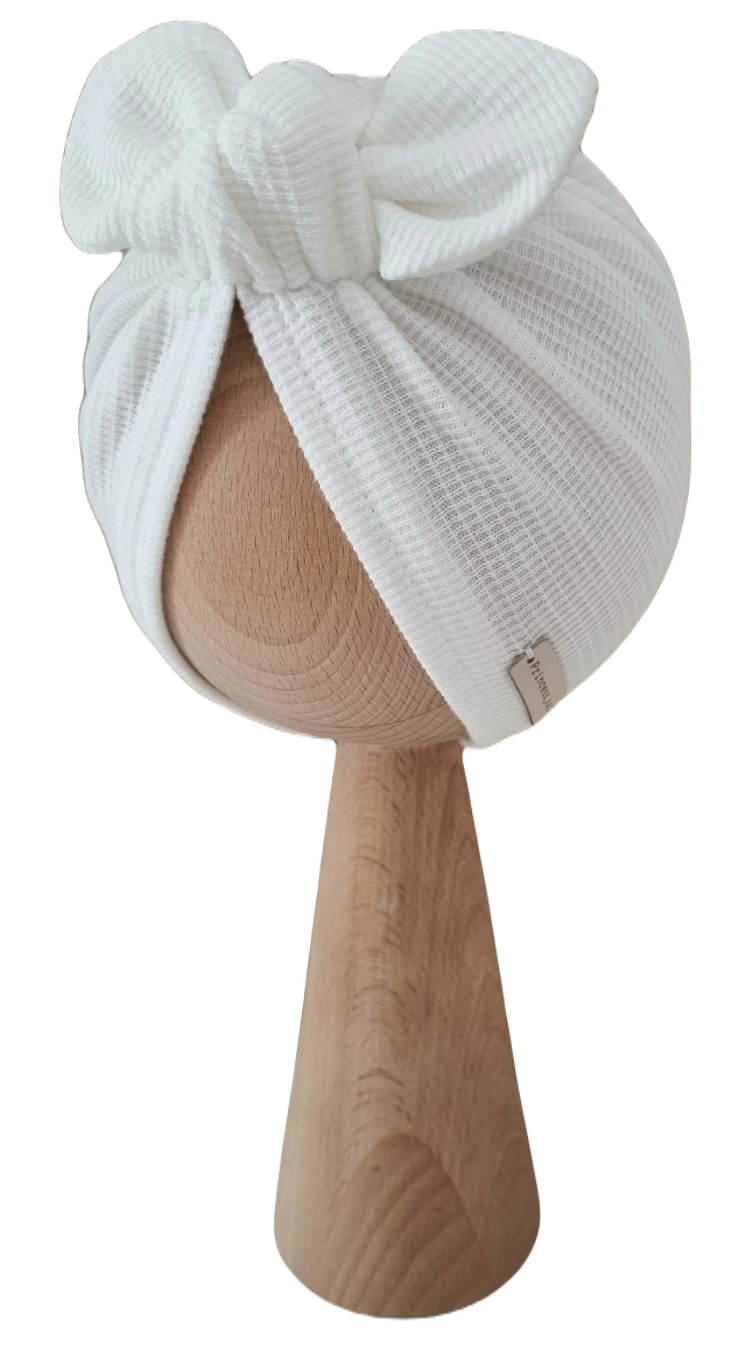TURBAN MOTYLEK wykonany z bardzo delikatnej i pięknie prezentującej się dzianiny o charakterystycznym splocie wafelka.