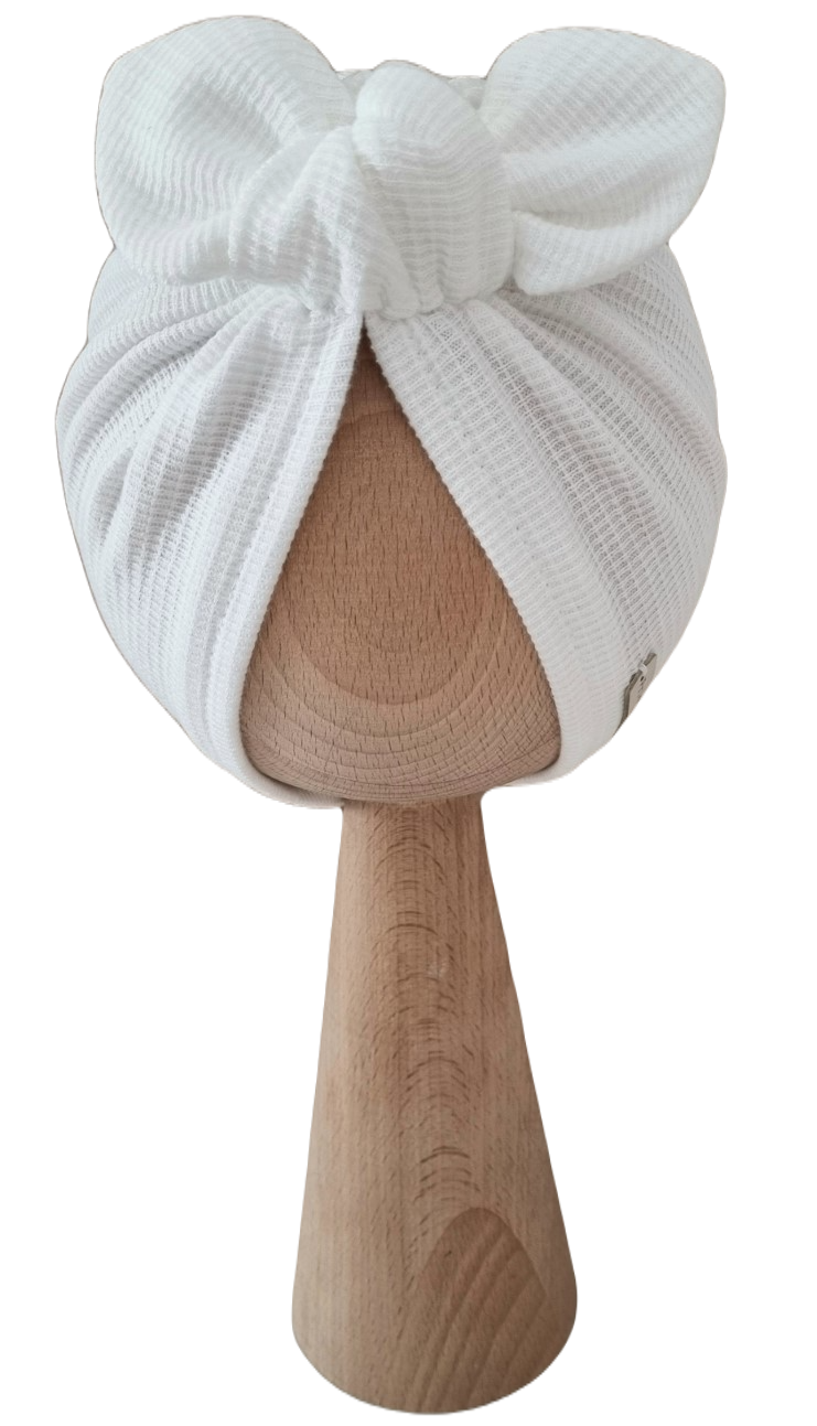 TURBAN MOTYLEK wykonany z bardzo delikatnej i pięknie prezentującej się dzianiny o charakterystycznym splocie wafelka.