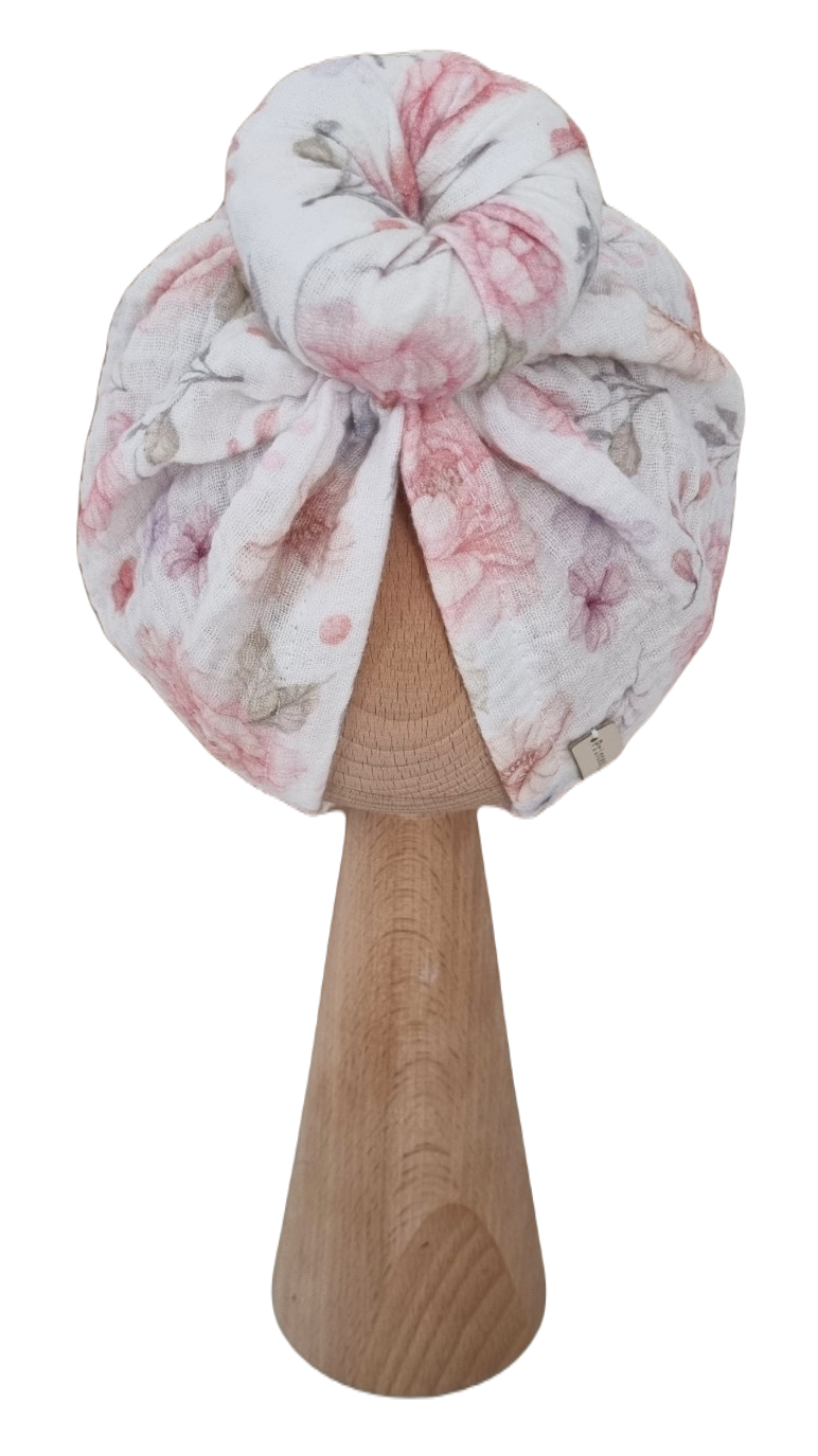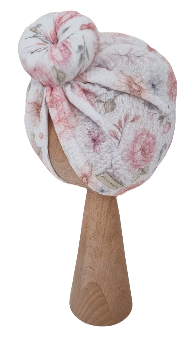 Muślinowe turbany to nasza propozycja na słoneczne i ciepłe dni. Turban jest bardzo praktyczny, ponieważ osłoni główkę dziecka przed słońcem i jednocześnie ochroni przed wiatrem.