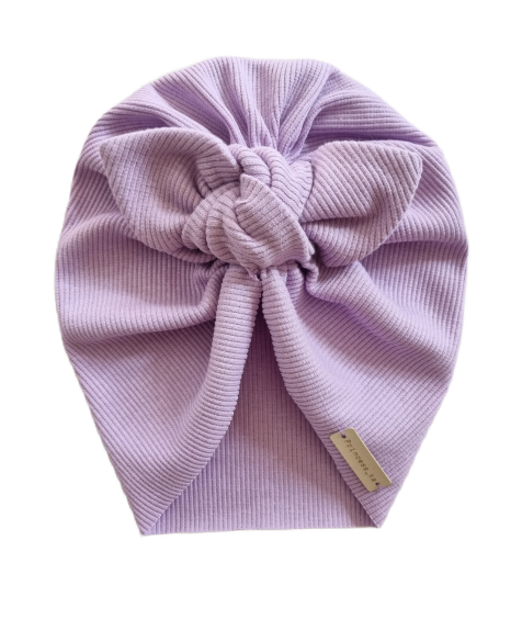 TURBAN MOTYLEK wykonany z bardzo elastycznej dzianiny prążkowanej, dzięki czemu idealnie dopasuje się do główki dziecka.