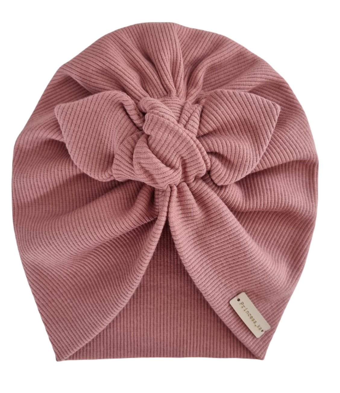 TURBAN MOTYLEK wykonany z bardzo elastycznej dzianiny prążkowanej, dzięki czemu idealnie dopasuje się do główki dziecka.