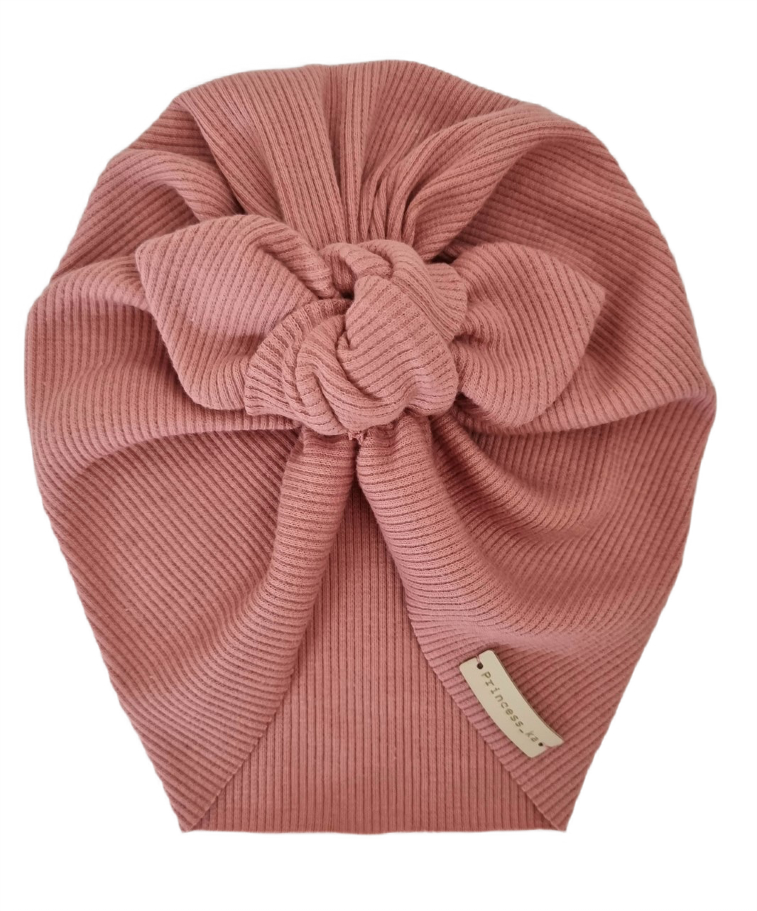 TURBAN MOTYLEK wykonany z bardzo elastycznej dzianiny prążkowanej, dzięki czemu idealnie dopasuje się do główki dziecka.