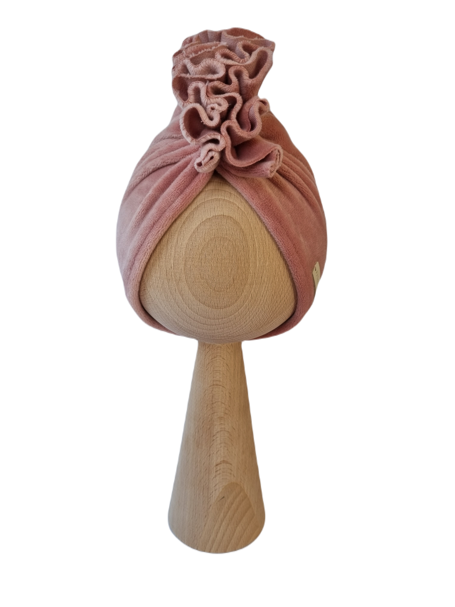 TURBAN WELUROWY FALBANKA Pastelowy Róż