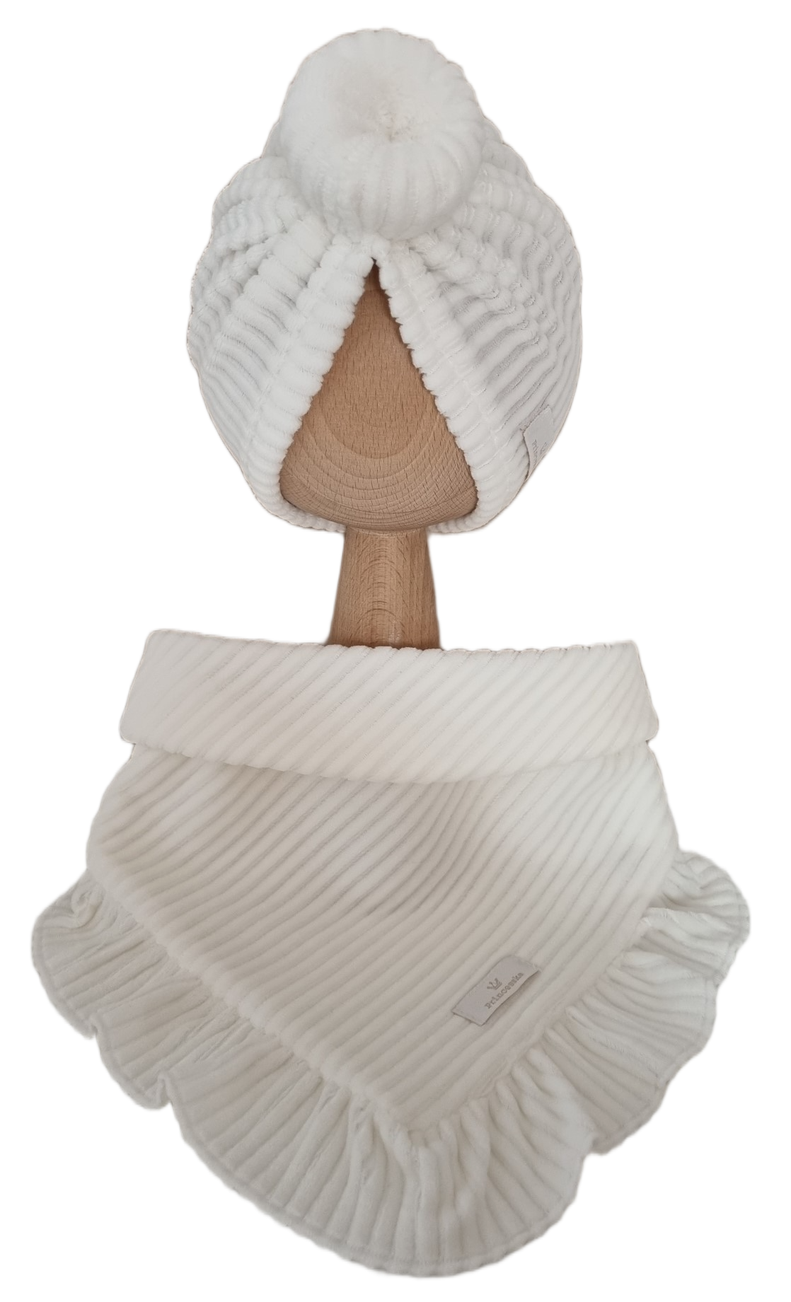 VELVET PRĄŻEK KOMPLET TURBAN DONUT I CHUSTA Z FALBANKĄ Ecru