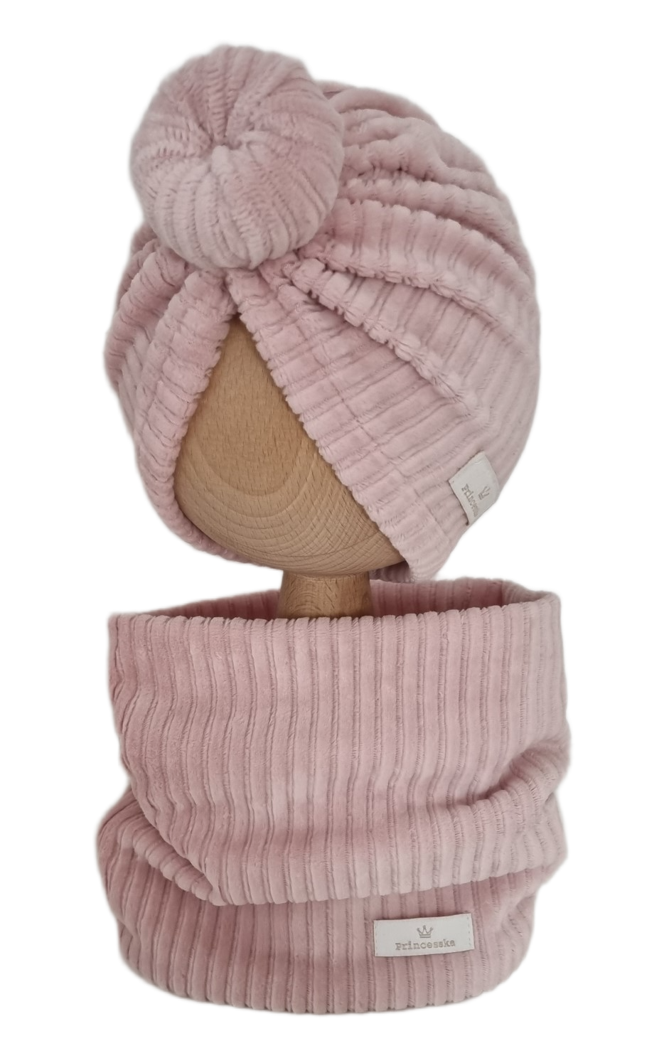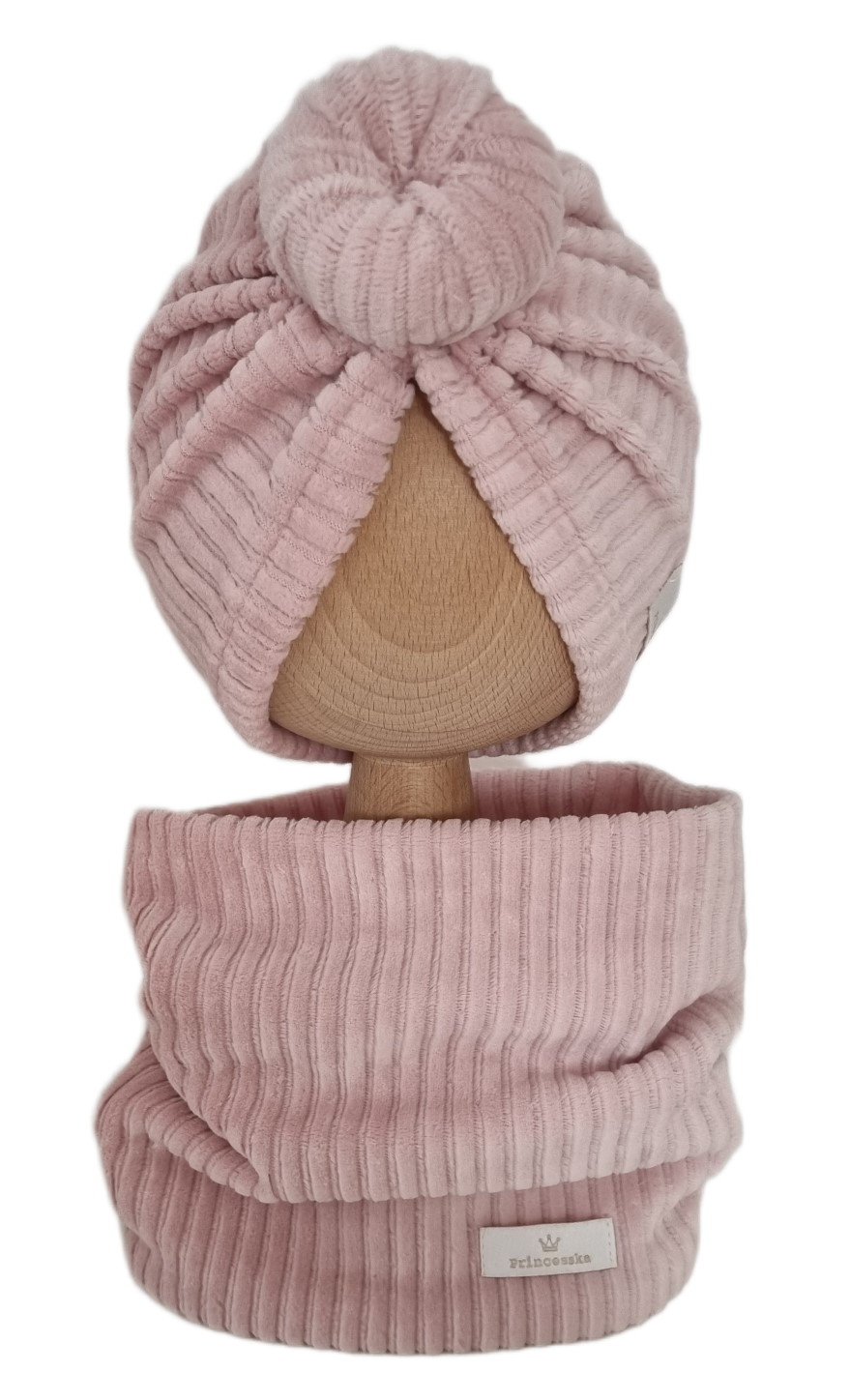 VELVET PRĄŻEK KOMPLET TURBAN DONUT I KOMIN Róż