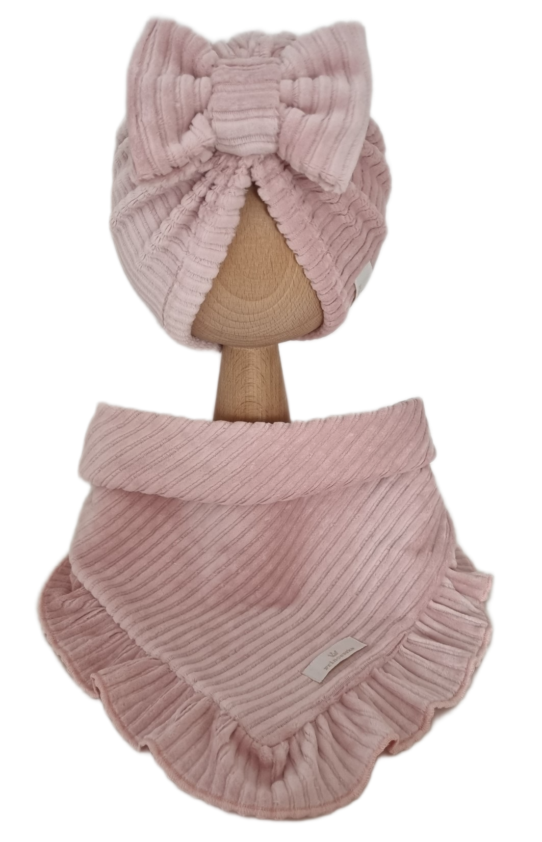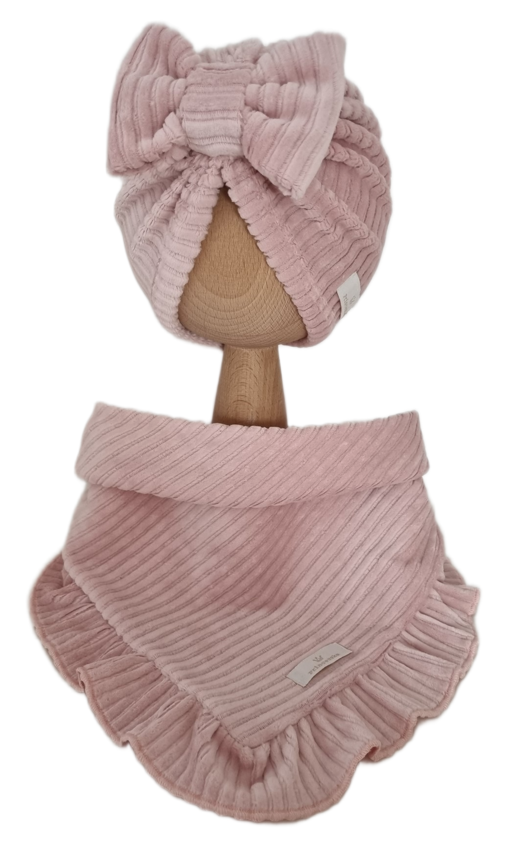 VELVET PRĄŻEK KOMPLET TURBAN KOKARDA I CHUSTA Z FALBANKĄ Róż
