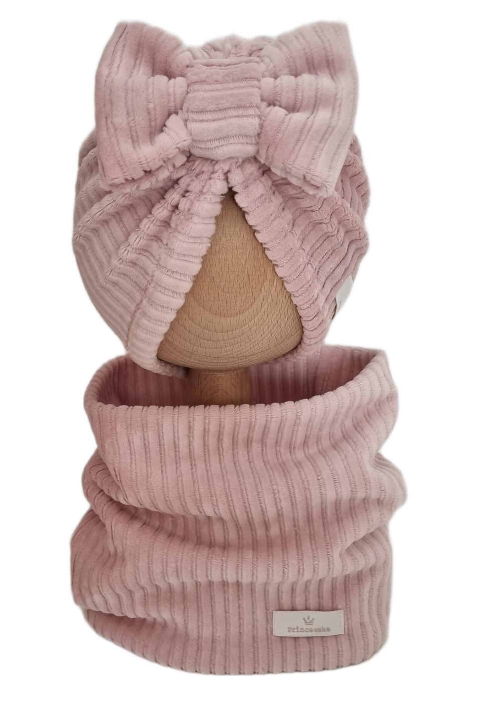 VELVET PRĄŻEK KOMPLET TURBAN KOKARDA I KOMIN Róż