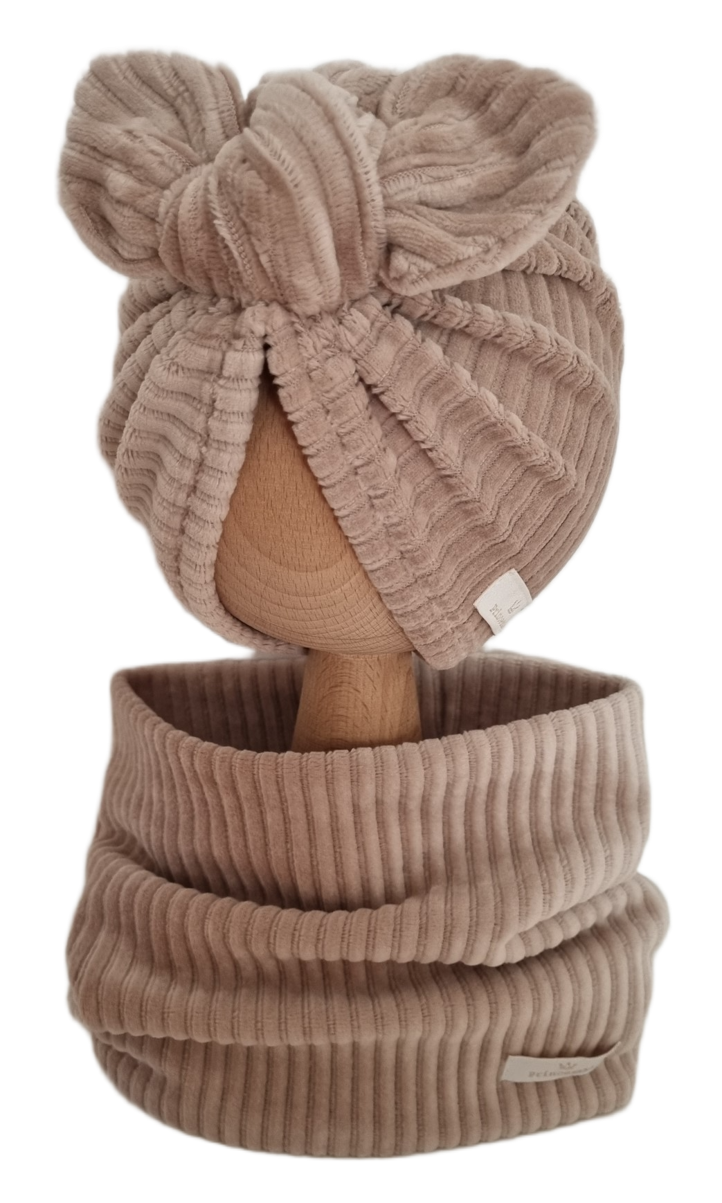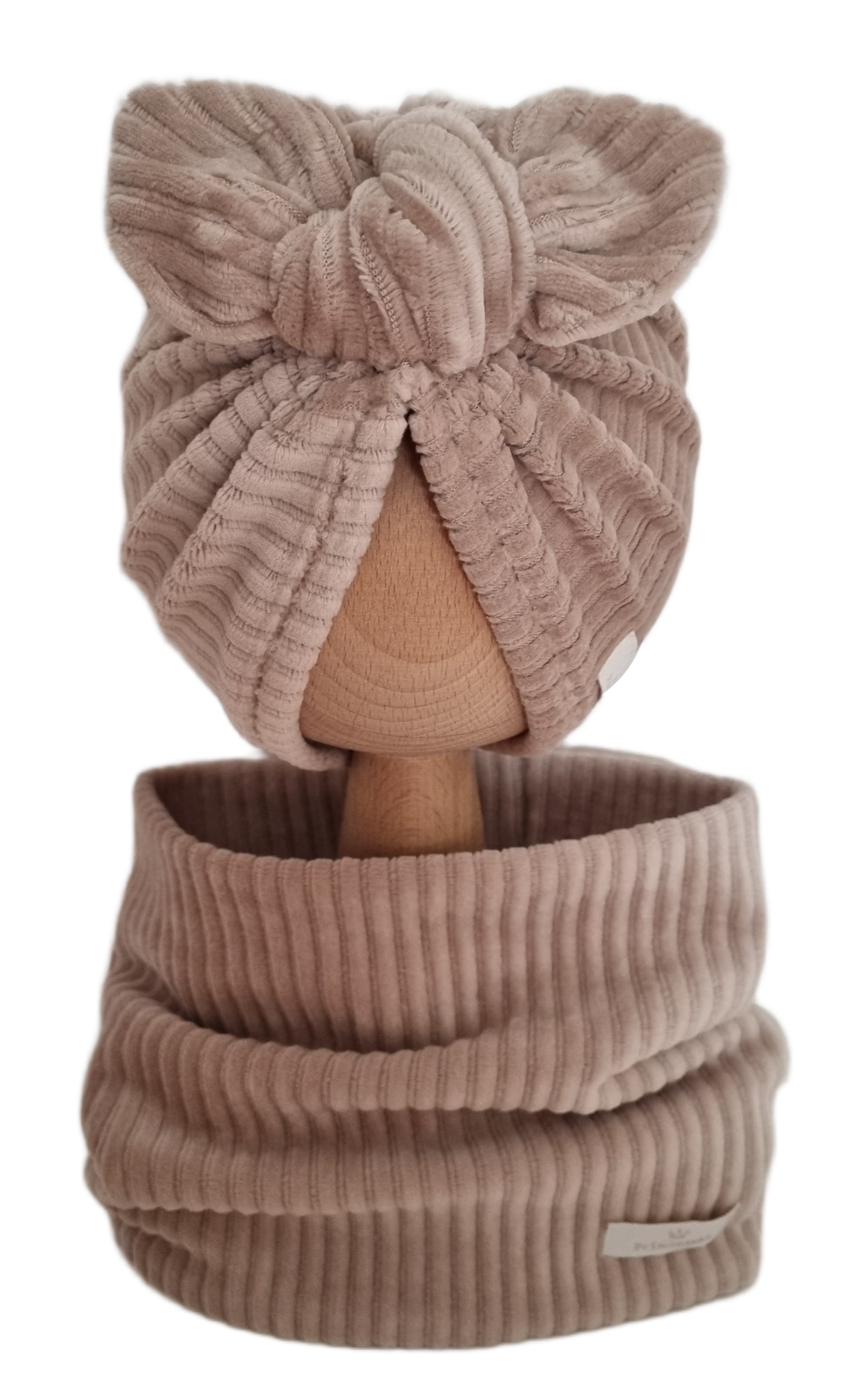 VELVET PRĄŻEK KOMPLET TURBAN MOTYLEK I KOMIN Ciemny Beż