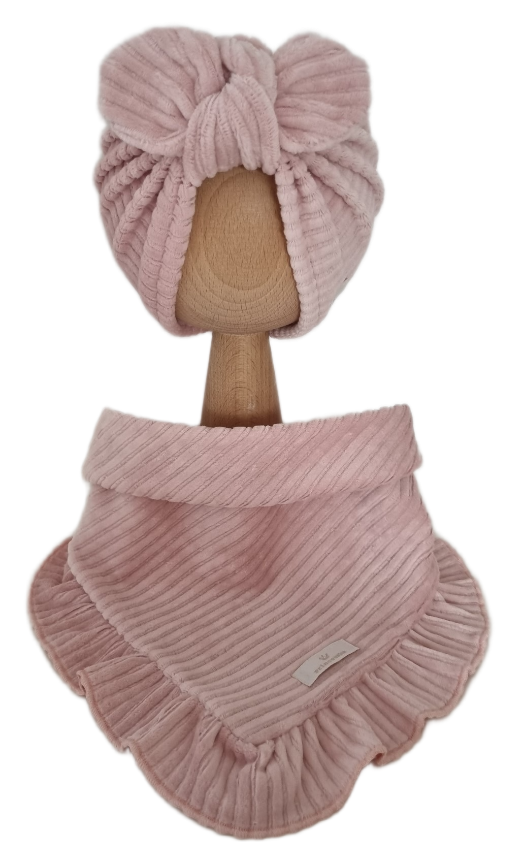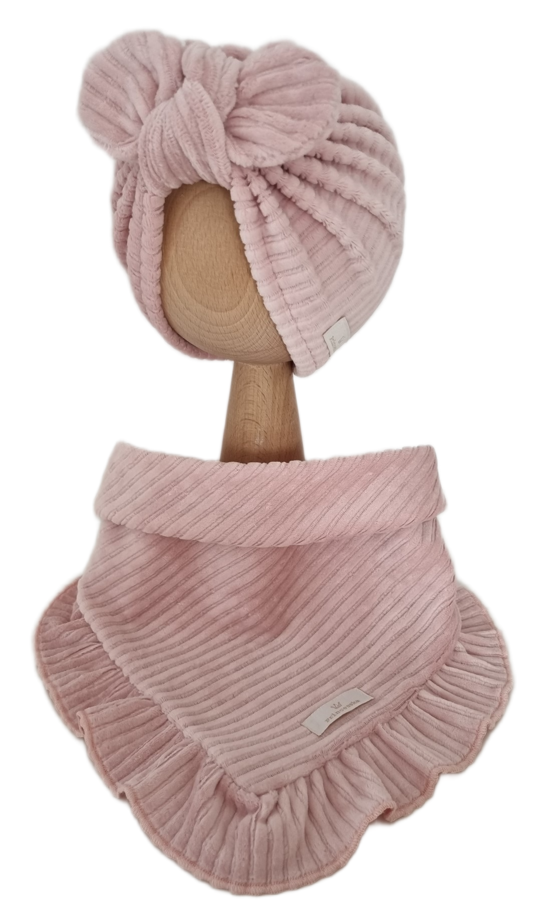 VELVET PRĄŻEK KOMPLET TURBAN SPLOTKA I CHUSTA Z FALBANKĄ Róż
