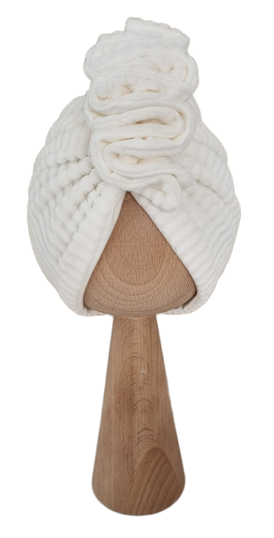 VELVET PRĄŻEK TURBAN PODWÓJNY Z OZDOBNĄ FALBANKĄ Ecru