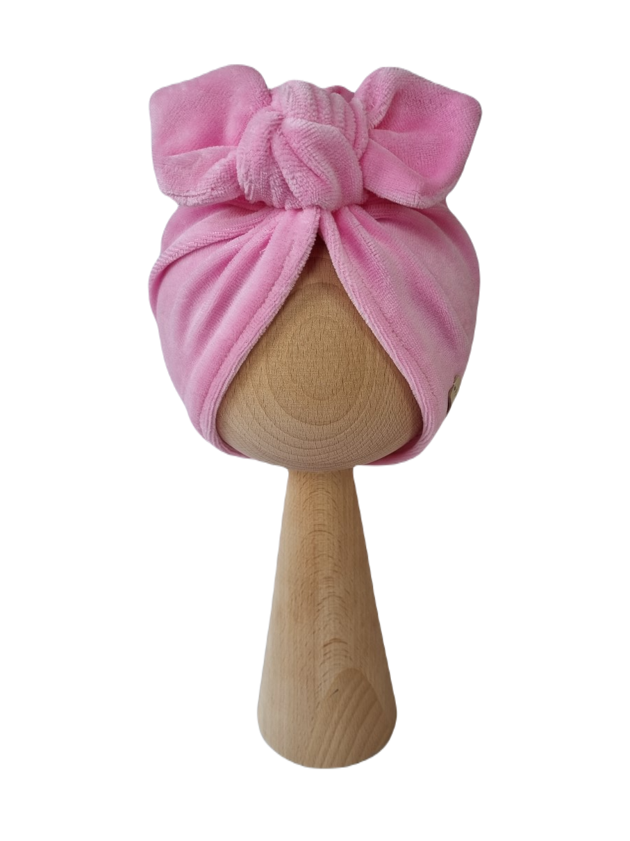 WELUROWY TURBAN MOTYLEK Jasny Róż