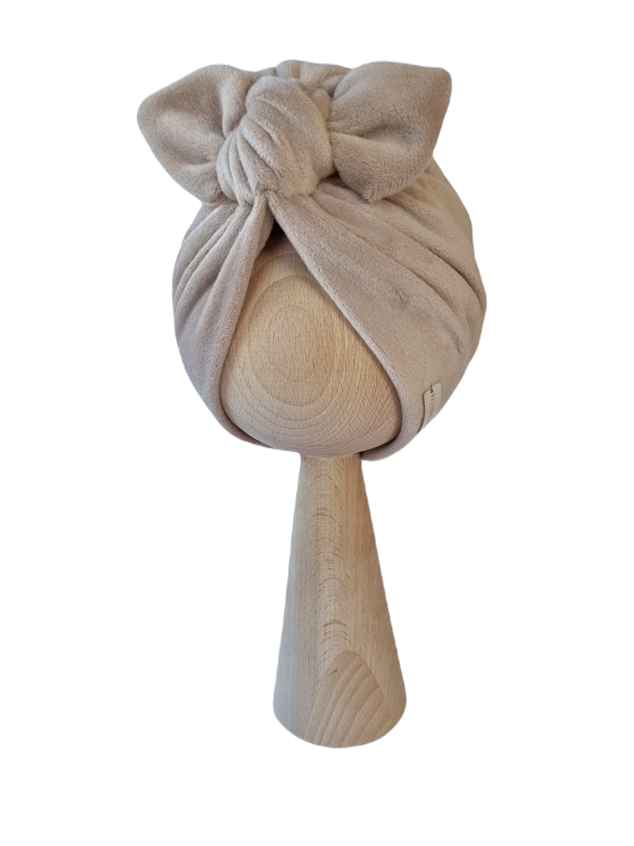 WELUROWY TURBAN MOTYLEK PODWÓJNY Jasny Beż