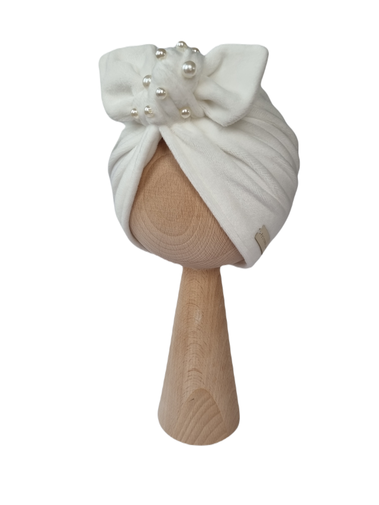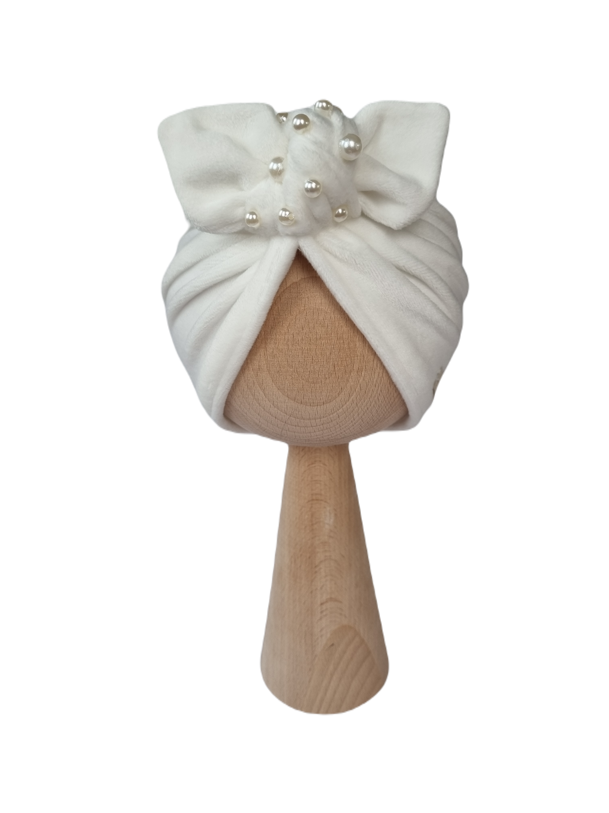 WELUROWY TURBAN Z KORALIKAMI Ecru