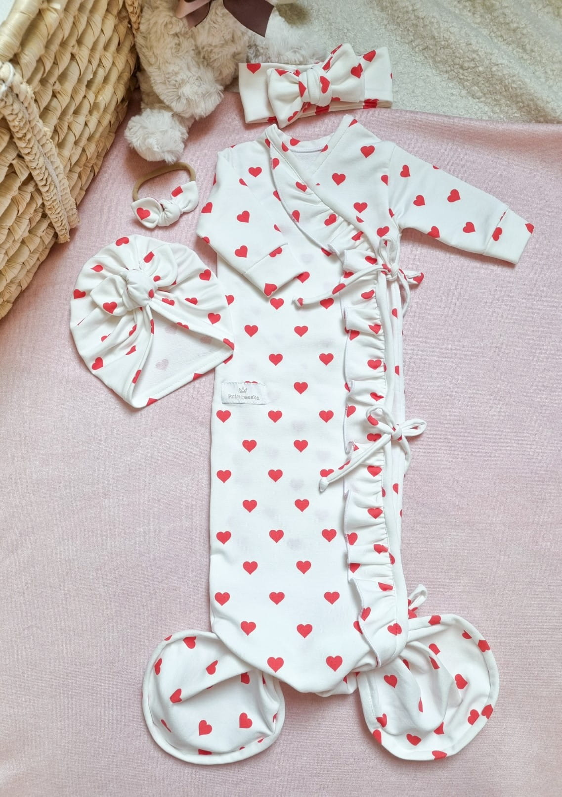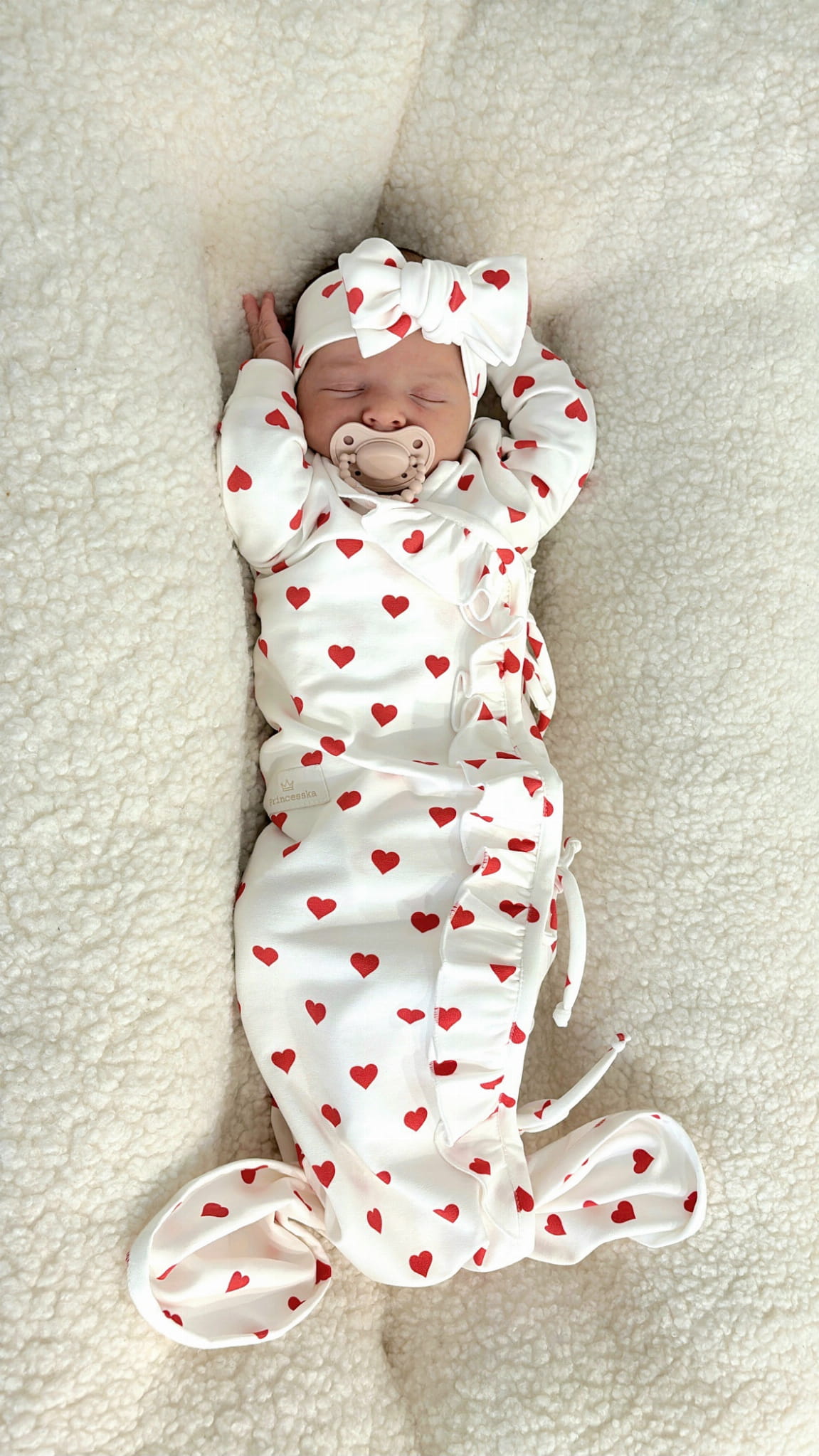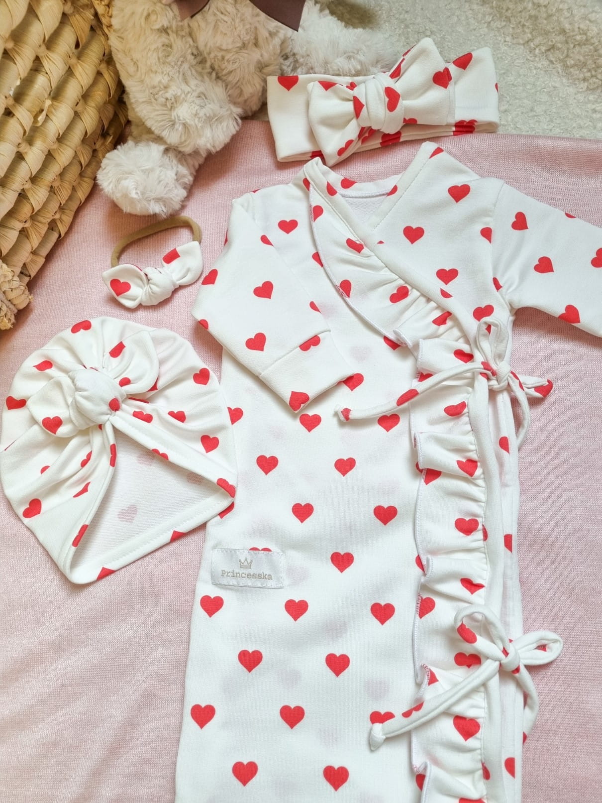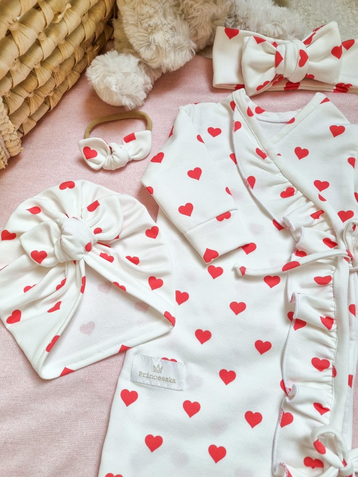 Zestaw Śpiworek Turban MOTYLEK Opaska KOKARDA Opaska bezuciskowa MOTYLEK - Serduszka